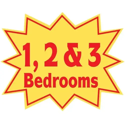 Promotional 1, 2 & 3 Bedrooms Burst Sign, 22-1/2 X 18