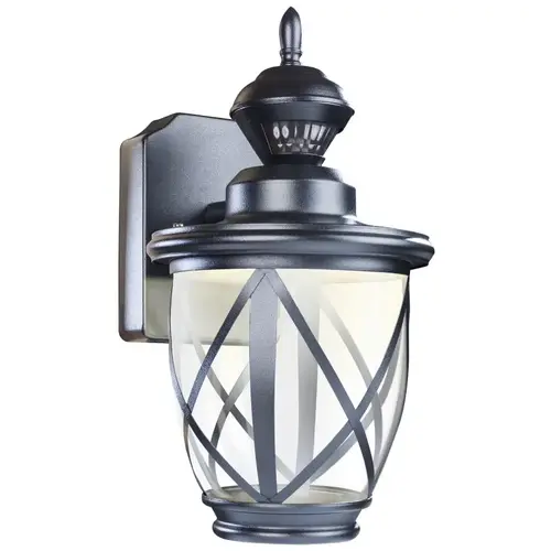 Heath Zenith Decorative Motion Sensing Light, 120 VAC, Lamp Wattage: 11 W, Lamp Type: Integrated LED, Color Temperature: 3000 K, Lumens: 500 Lumens, Fixture Material: Metal, Fixture Color: Black, Dimensions: 12.78 in H x 6.98 in W x 8.46 in D, Includes: DualBrite Timer