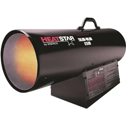 Heatstar 250,000 - 400,000 BTU Forced Air Propane Heater is built to last with high quality components and heavy-duty design built for the job site. This Thermostatically controlled Heatstar 400,000 BTU Propane Forced Air Heater comes with a standard 20 ft. hose, regulator and all the safety you would expect of a Heatstar product. Equipped with factory installed high limit switch and continuous solid-state ignition, you can feel comfortable using this heater on any job site. Just plug the heater into a 110-Volt outlet then hook up the included hose and regulator to 2 - 100 lb. propane tanks, then you are ready to take the chill out of any job. Warning: Improper installation, adjustment, alteration, service or maintenance can cause property damage, injury or death. Read the installation, operation and maintenance instructions thoroughly before installing or servicing this equipment. For assistance or additional information consult a qualified installer, service agency or gas supplier.