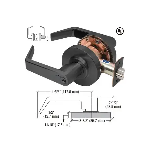 These CRL Heavy-Duty Commercial Grade 1 and 2 Lever Locksets are non-handed and reversible. These Locksets are UL Listed with a 3-hour fire rating, and fit door thicknesses from 1-3/8" to 1-3/4" (35 to 45 mm) with a 2-3/4" (70 mm) backset. Available with either a Schlage 'C' 6-pin keyway or a 7-pin Small Format Interchangeable Core (SFIC) and an ANSI 1-1/4" x 4-7/8" (32 x 124 mm) Strike.