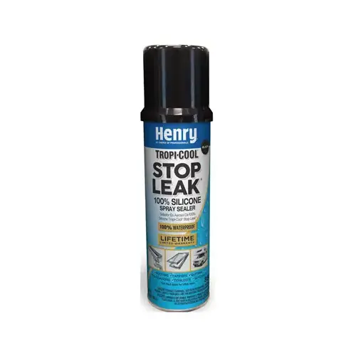 Henry 880 Tropi-Cool Stop Leak 100% silicone spray sealer is a premium, easy-to-use, 100% silicone aerosol leak sealer, formulated to provide a permanent leak-proof seal on a variety of surfaces. This multi-purpose leak sealer waterproofs and protects gutters, skylights, flashing, roofs, RVs, campers, windowsills, foundations, boats, cars, concrete, glass, metal and more.