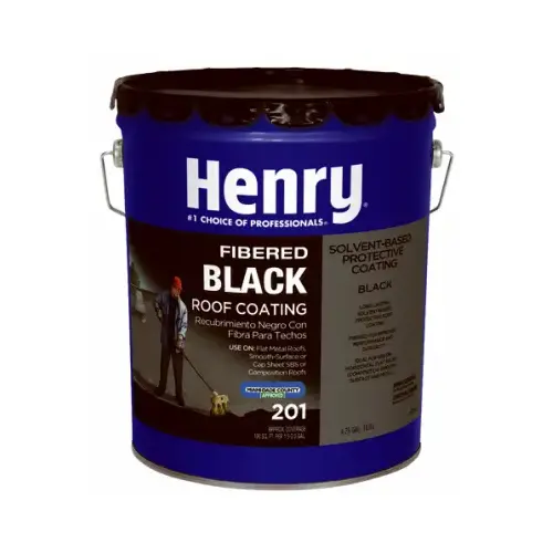 Henry 201 Fibered asphalt roof coating is a premium cold applied, brush or spray grade asphalt coating in a solvent system. It is a penetrating-type protective coating formulated to provide a tough, durable, weather-resistant film. The solvent system allows working at lower temperatures than with asphalt emulsions and the coating won't wash off if unexpected rain occurs before curing.