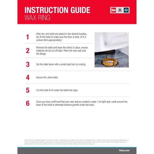 Jumbo Johni-Ring wax gaskets provide a permanent, sanitary, gas and watertight seal on most types of water closets. Constructed of high-quality golden wax, Johni-Rings will not dry out, harden, or deteriorate. Each wax ring packaged in a Clean-Release tray for easy removal and installation.