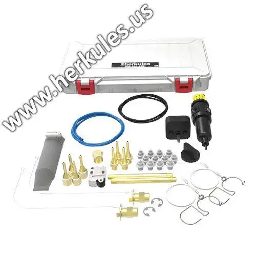 (2) 12509 Air Cap Assembly, (2) 1002651 E-Rings, (2) C9A 1/8 NPT x 4-1/2 Brass Nipple, (2) 22GW Trigger Lock Assembly, (1) M1C Limit Valve, (12) 54P1 White Fulljet Nozzle, (4) 53A Stem Support Male, (4) 53B Stem Support Female, (1) M230-002 Knob, (1)....