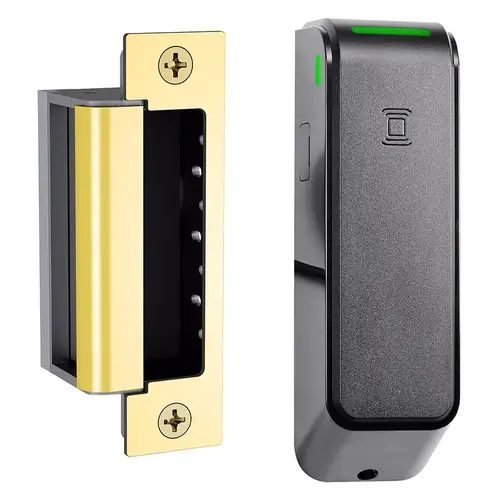 Grade 1 Electric Strike, Aperio Wireless, Reader and 1600 Strike, Strike Body Only, Convenience (Not Monitored), RFID (HID multiCLASS SE), Bright Brass Finish