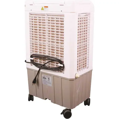 The Hessaire 2,100 CFM Evaporative Cooler is compact in size, pleasing in aesthetics and the performance exceeds coolers of a much larger size. This performance is achieved through expanding air-intake areas to the hi-density XeL50 rigid media. This cooler features an ice pack loading tray that is designed to add colder bursts of air. This cooler also has 3 media panels instead of a single panel found on most mobile coolers. 3 panels allow more air-intake area and reduce pre-rotation of the air to the prop, which translates into lower static pressure and more efficient air delivery to the prop. The hi-density XeL50 media provides 80% more evaporation surface compared to regular density media. This means higher evaporation efficiency and cooler temperatures. The oscillating feature of this unit also means that more sq. ft. is covered by this unit than other units at comparable sizes. Note: This unit is Not an air conditioner and therefore uses much less energy and saves more on electricity costs. It is best used in dry climates or open spaces. Leave window/door open to limit the rise of humidity and keep better air ventilation in the room.