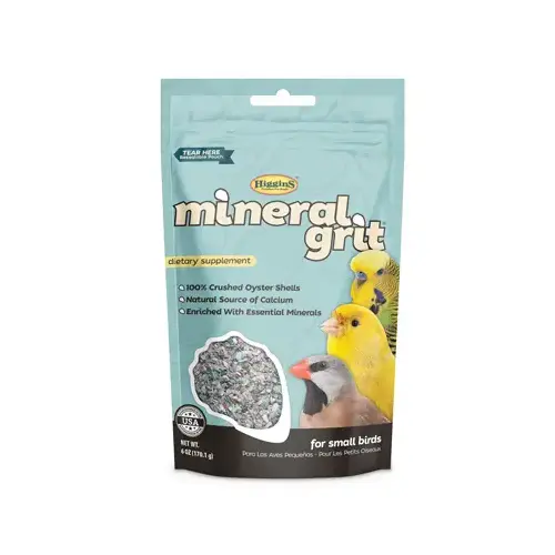 Mineral Grit for all small birds including Canaries, Finches, and Parakeets, is a great source of calcium and minerals. Mineral Grit is made with crushed oyster shells and not gravel. The oyster shells are enriched with essential minerals that give its unique color and natural anise oil for a pleasing, licorice aroma.