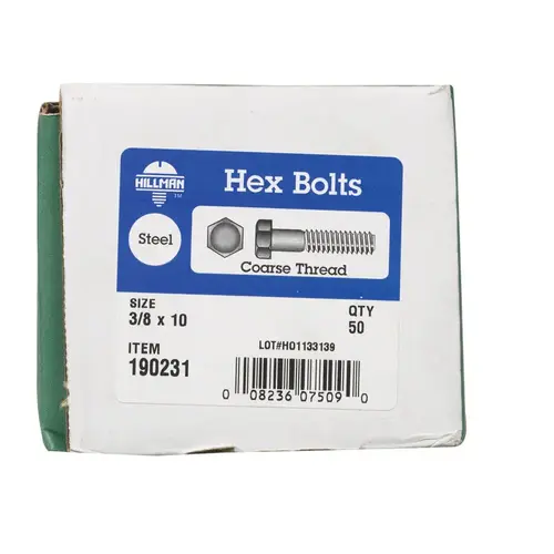 Hillman 190231 Hex Bolt 3/8" D X 10" L Zinc Plated Steel Zinc Plated