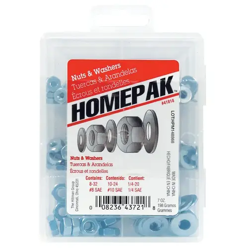 #10 SAE Flat Washer, #8 SAE Flat Washer, 1/4 SAE Flat Washer, 1/4-20 Hex Nuts, 10-24 Hex Nuts, 8-32 Hex Nuts
