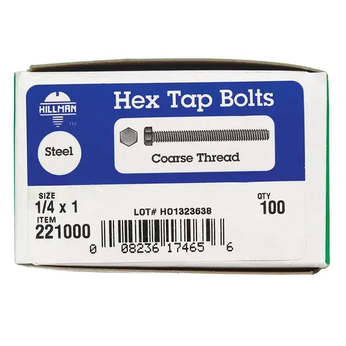 Hillman 221000 Hex Tap Bolt 1/4" D X 1" L Zinc Plated Steel Zinc Plated