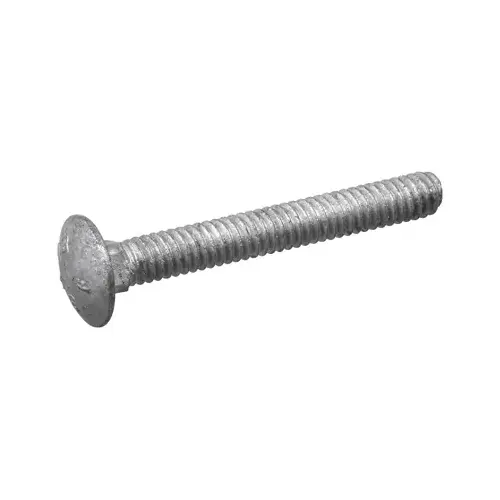 Carriage bolts are designed to fasten a wooden face to either a wood or metal frame. Its flat head is designed to eliminate the need for a washer and provide a semi-flush finish to applications. The square underside of the head is self-locking to eliminate spinning and the need for a driving tool. The galvanized finish provides optimal rust prevention but can be chalky in appearance. *