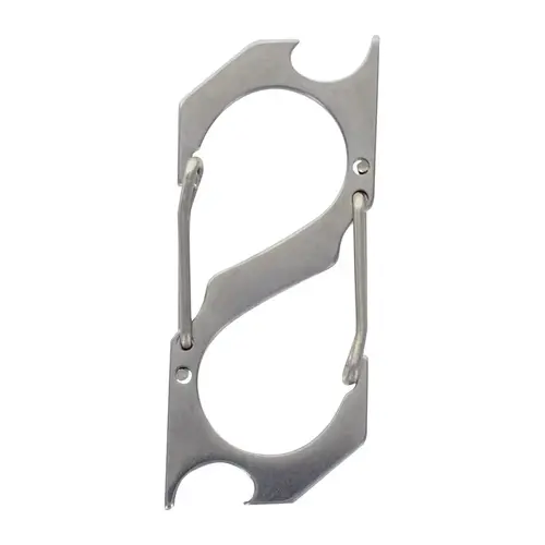 The multi-tool S-Carabiner Bottle Opener features a sleek design in a functional key chain. The carabiner makes the item easy to attach to key chains, belt loops, bags and more. The bottle opener built into the carabiner will come in handy when you need a cold drink. *