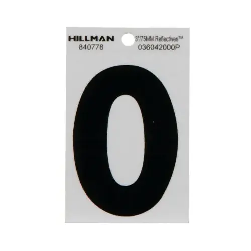 HILLMAN FASTENERS 840778-XCP6 Adhesive House Address Number 0, Black and Silver Vinyl, 3-In. - pack of 6