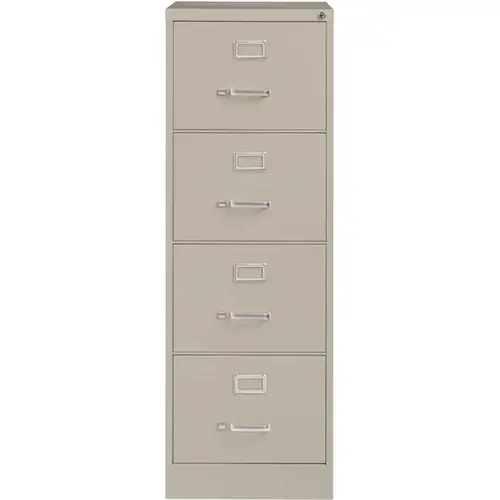 Hirsh 25" Deep 4 Drawer Legal Width Metal Vertical File Commercial Grade Black Commercial Grade Ball-Bearing Suspension Allows Fully Loaded Drawers To Open With Ease Durable, fully assembled steel construction with non-porous surface is easy to clean Follower wires keep files upright and organized Lock included to keep contents of all drawers secure Aluminum handles and label holders Accommodates legal-size hanging files Limited Lifetime Warranty Meets or exceeds ANSI-BIFMA standards Greenguard Gold Certified TAA Compliant Mfg #17549