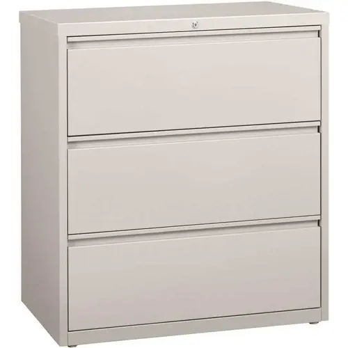 This 36 in. W 2 drawer commercial grade lateral filing cabinet is designed for heavy duty use, yet looks great in any office. Precision ball-bearing suspension allows for quiet use in your busy office environment. Fully assembled steel construction with reinforced base. Non-porous surface is easy to clean and disinfect. Interlock system prevents tipping by only allowing one drawer open at a time. Dual lock bars and core-removable lock come standard. Unit includes hang rails, magnetic label holders, and four adjustable leveling glides.