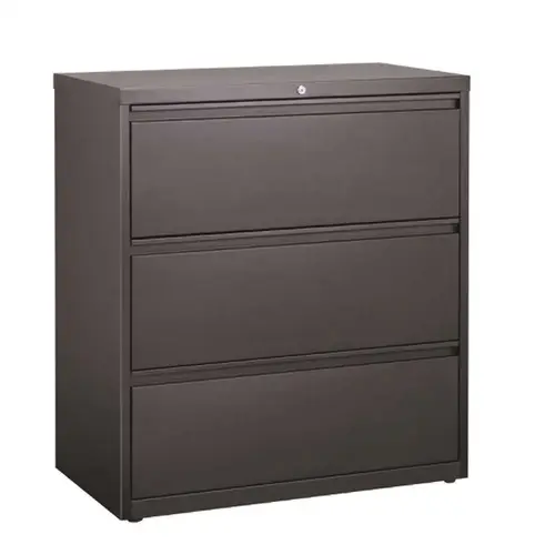 This 36 in. W 2 drawer commercial grade lateral filing cabinet is designed for heavy duty use, yet looks great in any office. Precision ball-bearing suspension allows for quiet use in your busy office environment. Fully assembled steel construction with reinforced base. Non-porous surface is easy to clean and disinfect. Interlock system prevents tipping by only allowing 1-drawer open at a time. Dual lock bars and core-removable lock come standard. Unit includes hang rails, magnetic label holders, and 4 adjustable leveling glides.