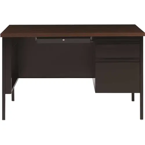 Hirsh Industries 20437 Commercial 48 in. W x 30 in. D Rectangular Black / Walnut 3-Drawer Executive Desk with Right-Hand Single Pedestal File