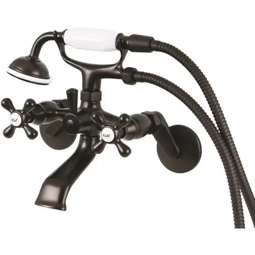 Bring a modern style with a nostalgic feel to your claw foot tub. Featuring an elegant wide spout, this faucet will look great in any bathtub. Solid brass construction for durability and reliability and a hand held shower.