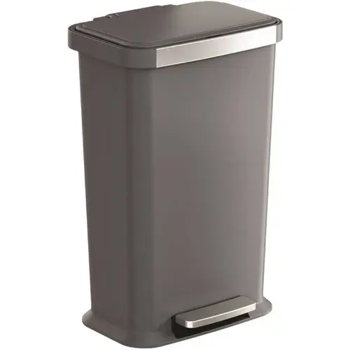 HLS Commercial 13.2 Gal / 50 Liter Gray Plastic Step Pedal Trash Can/Odor Filter. Soft And Silent Lid Close And Smooth, Easy Pedal Operation. Odor Filter Keeps Surrounding Area Smelling Fresh & Clean. Durable And Easy To Clean Plastic. Trash Bag Retainer Rim Keeps A Full Bag Firmly In Place And Bag Ends Neatly Out Of View. Carry Handle For Easy Mobility. Dimensions: 13" L X 16.5" W X 25.7" H (35.7" H With Lid Open). Perfect For Hospitality, Healthcare, Retail, Offices, Education Facilities, Government Buildings, And Multi-Family Residential Spaces.. Mfg #HLSPL13GGP