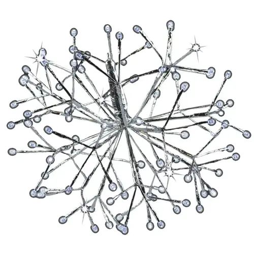 Our Shimmering Sphere is a LED hanging sphere with metallic wrapped branches and twinkling strobe accents. With wrap matching the LED lights, and twinkling lights placed throughout the sphere, this is your go-to when you want to take your decor to the next level.