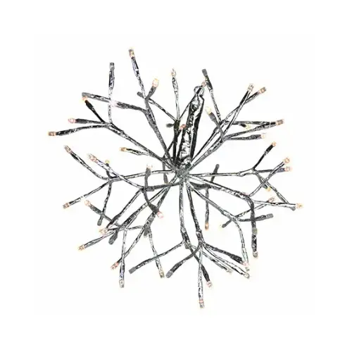 Our Shimmering Sphere is a LED hanging sphere with metallic wrapped branches and twinkling strobe accents. With wrap matching the LED lights, and twinkling lights placed throughout the sphere, this is your go-to when you want to take your decor to the next level.