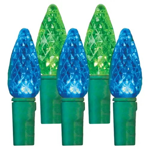 These energy efficient and long lasting C6 LED lights are available in a spool of 210 (The length is 49.2 ft L). These C6 LED lights have a 2.7 in spacing between sockets on a green wire with end to end connectors so you can connect multiple sets.