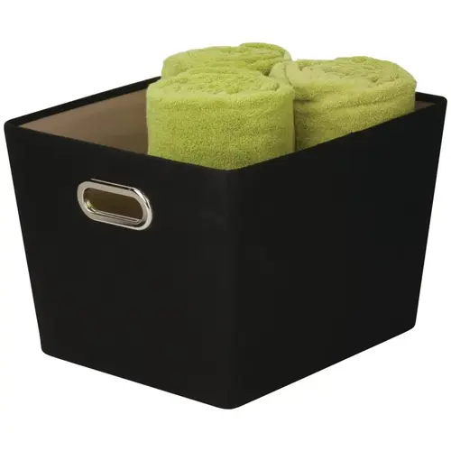 Polyester exterior, solid color 75 g non-woven interior. Sturdy construction, chrome handles.