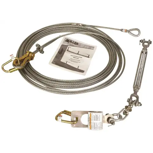 100 ft. Lifeline with combo-clamp-thimble, turnbuckle, cable clamps, carabiners, tension indicator and two (2) energy absorbers