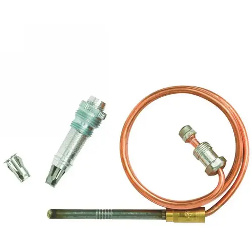 The Q340A thermocouples sense the pilot flame on standing pilot gas-fired heating systems. The pilot flame heats the tip of the thermocouple, producing a temperature differential between it and the base to generate 30 millivolts. Universal compatibility.
