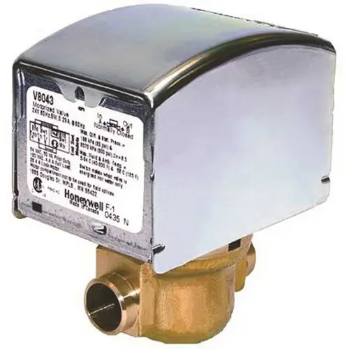 2-way on-off low voltage valves consist of an actuator and valve assembly for controlling the flow of hot water. Manual opener (on all models, except straight-through, normally open valves) for valve operation on power failure; valve returns to automatic position when power is restored. All models may be installed without disassembling the valve.