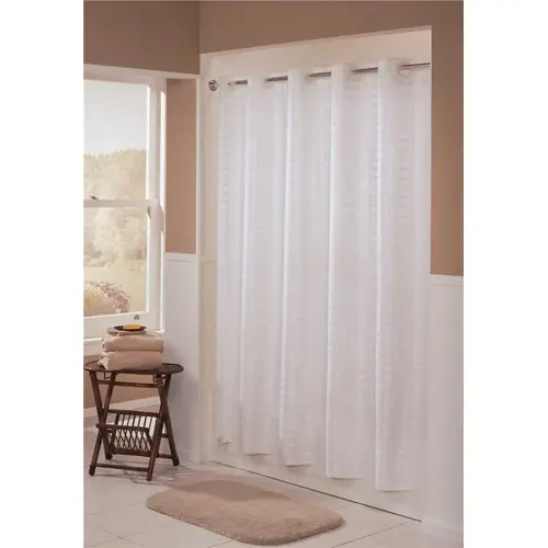 Hookless Shower Curtains hang in just seconds, saving you time, which saves you money on labor. With our Flex-On rings, there is no need to purchase additional hooks or rings. The popular Litchfield Hookless Shower Curtain features and overlapping rectangle pattern for visual interest.