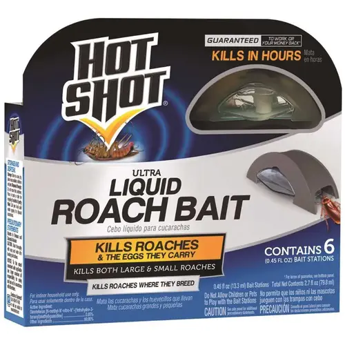 Kills roaches where they breed. Attracts fast and kills fast in as little as 24 hrs. No spills and no mess to clean-up. Each station contains both food and water. For indoor use only. Carton contains 6 bait stations. Contains the active ingredient dinotefuran.