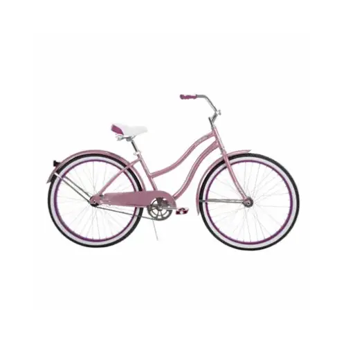 26", Women's, Good Vibration Bike, Pink Color Frame, Precision Crafted Classic Cruiser, Steel Unicorn Fork, Coaster Brakes, Steel 1 Piece Crank, Proprietary Embroidered Spring Saddle Seat, 26" X 2.125" Whitewall Tires, 38 Mm Steel Rims, Quick Release Seat, Huffy Branded Dual Density Grips & Pedals 12 Gauge Spokes, Fenders, Huffy Cruise Fit Geometry.