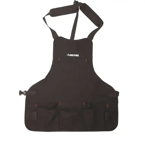The Husky Black Canvas Bib Apron is just what you need for working in the shop or garage. This apron is made from heavy-duty canvas and has full coverage to protect you from flying debris, stained clothes, etc. There are 16 pockets and 2 web loop hammer holders. The belt is adjustable and fits waists up to 52 in.