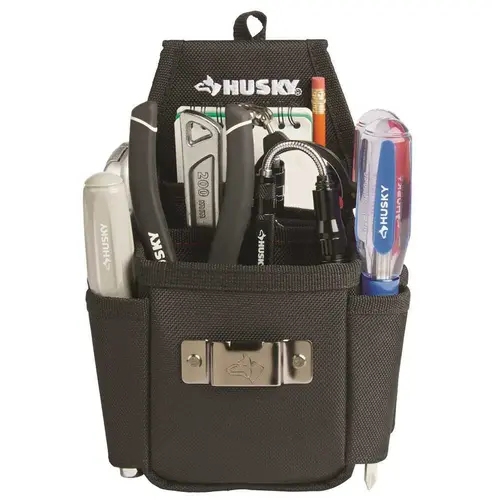 The Utility Plus Pouch is just what you need to carry a lot of your tools that you need to keep on you while you work. It holds everything from tape measures to notepads to small tools to your long tools. Its made to last with heavy-duty fabric. It has a padded flap that is easily attaches over a belt without removing it or fits in a pants pocket.