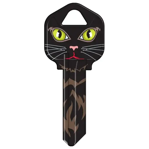 HY-KO Key Blank, Design/Theme: Black Cat Face, Brass, Nickel, Suitable for: Kwikset KW1 Keyways