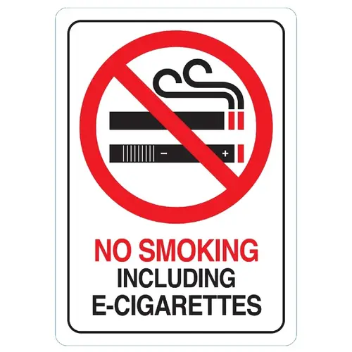 Deco Sign, NO SMOKING INCLUDING E-CIGARETTES, White Background, Plastic, 7 in H x 5 in W Dimensions