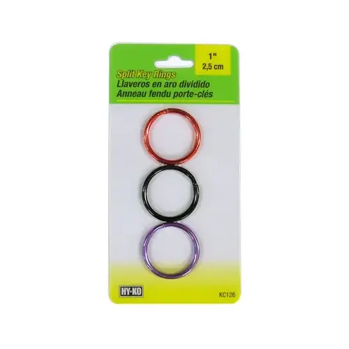 HY-KO Key Ring, Split, Ring Material: Metal, Ring Size: 1 in
