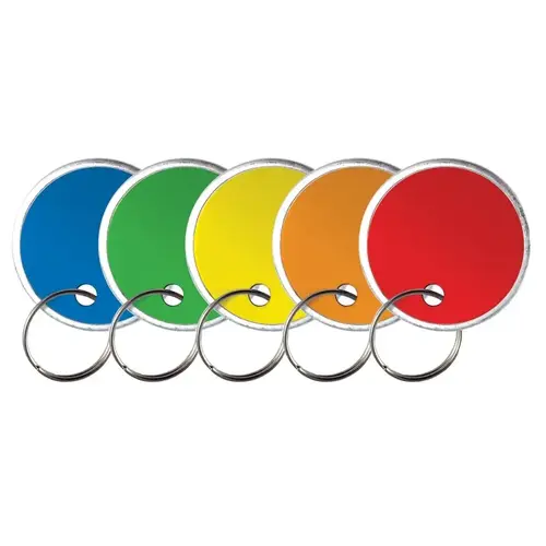 Identify your keys more easily with these brightly colored paper tags. Attach to keys easily with the split key ring that is attached. Can be used for the home or office. Assorted colors.