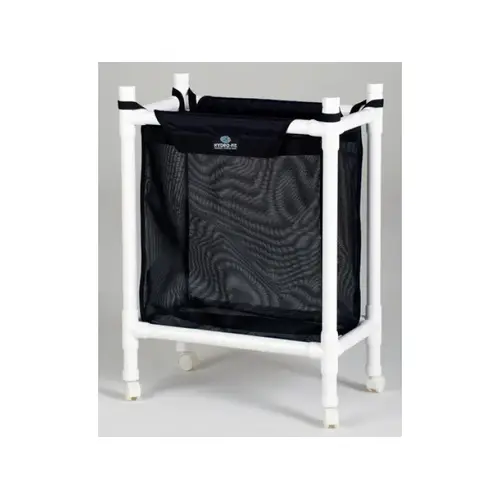 Hydro-Fit 184 38"H x 16"D x 28"W Multi-Purpose Storage Cart Our sturdy and lightweight Multi-Purpose Storage Bins provide convenient and versatile deck storage for a variety of pool equipment. Durable and portable, our storage bins roll easily on the surface of your pool deck and are designed to fit through a standard 36" doorway for the option of off-deck storage.