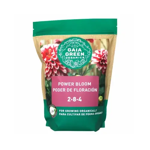 Gaia Green Power Bloom, 2 kg Pouch. Gaia Green Power Bloom is a high phosphate fertilizer specifically formulated to support prolific flowering and fruiting. As a result, Power Bloom is our best fertilizer for root development and for all flowering and fruiting plants. This complex, multi-ingredient blend contains high phosphorus and potassium levels suitable for a wide range of flowering and fruiting crops. Embodies the Gaia Green ethos of improving soil quality to support resilient plant growth and abundant, long-lasting blooms. Easy-to-use and long-lasting, this formulation combines ingredients with variable nutrient release rates to support high-yields.