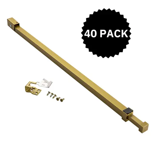 This 40-pack of security bars with anti-lift locks for sliding doors in homes, condos, apartments, and other housing applications slides from 25.75” to 47.5” and firmly locks, making it an ideal choice to enhance the security of your projects while adding a visual deterrent when required. The security bar is installed at the center of the door, features adjustable locking increments that allow the door to be left partially open, providing ventilation. without compromising security. Its installation provides greater stability than pressure-mounted bars, with a practical design that allows it to be swung upwards and away when not in use. This 40-pack will be delivered in one single box and includes 40 patio door security bars, 40 anti-lift locks, 40 locking saddles, 40 rotating brackets, and all screws needed for installation