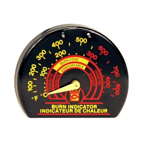 For single wall stove pipe only. Durable and highly accurate. Monitors wood stove performance. Burn efficiency range from 100 to 850 deg F (40 to 475 deg C). Install on stove pipe with magnetic attachment.