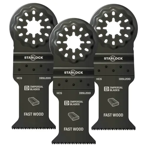 IMPERIAL BLADES Starlock Standard Blade, 18, HCS, Applicable Materials: Drywall, PVC, Wood, Black, 1-5/8 in Length, 1-3/8 in Width, Suitable for: Makita, Masterforce, Milwaukee, Performax, Rockwell, Bosch Starlock, Bosch StarlockPlus, Bosch StarlockMax, Fein Multi-Talent Oscillating Tools