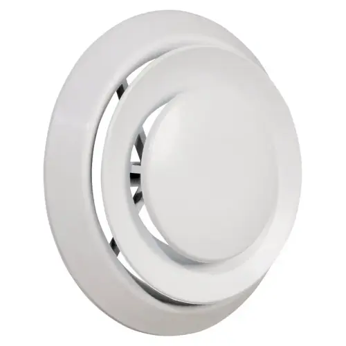 Overlapping rings stepped down for efficient, draft-free diffusion. Outer ring design resists ceiling smudging. Made of white polypropylene and supplied with an adaptor. Two flow settings for easy control of air intake or output from 0 to 100% for outstanding efficiency. Can be connected to a flexible or rigid duct.