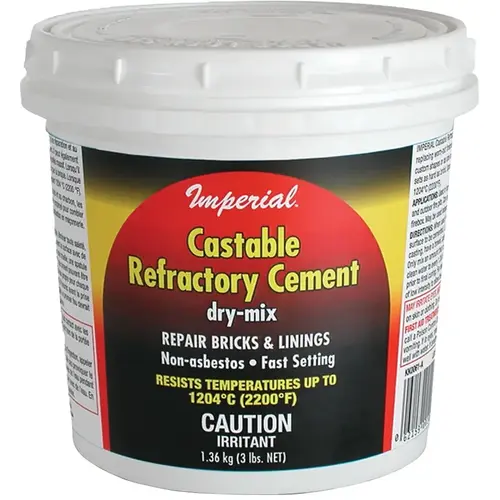 Repairs bricks and linings. Fast setting and non-asbestos. Can be cast into custom shapes or as one solid stove bed. Can be used indoors and outdoors. Resists temperatures up to 1204 deg C (2200 deg F).