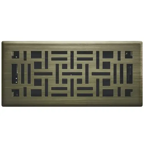 Imperial Art and Craft Floor Register, Projection Size: 1/4 in, Duct Opening Width: 9-13/16 in, Duct Opening Height: 3-15/16 in, Polystyrene/Steel, Vintage Brass, 10 in L, 4 in W