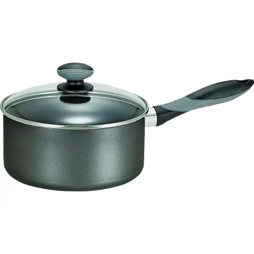 T-fal Non-Stick Sauce Pan with Lid, 2 qt, Thumb Rest Handle, Silicone Handle, Aluminum