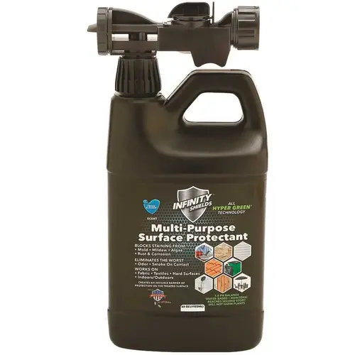 Keeping your surfaces protected and looking new has advanced to an entirely new level, using Hyper Green Technology. Infinity Shields is the most effective multi-purpose surface product on the market, making Infinity Shields the most economical ever. Infinity Shields is the only multi-purpose surface protectant with patented Hyper Green technology. This Hyper New Age technology blocks the staining from mold, mildew, algae, rust, and corrosion, all while eliminating the worst odors and smoke particles on contact and it happens all simultaneously. This unique process also prevents pests from the ability to smell through the treated surface and they pass on by. This hyper green invisible barrier of protection is environmentally friendly. Here's why, Infinity Shields is water-based, non-toxic with a pH balance of 7.0. Once on the surface, Infinity Shields creates an invisible, long-lasting barrier of protection, which will not rub off. Infinity Shields outdoor surface protection can be used on fabrics, textiles, and hard surfaces, natural or synthetic. During outdoor application intended hard surfaces can have a 50% moisture level.