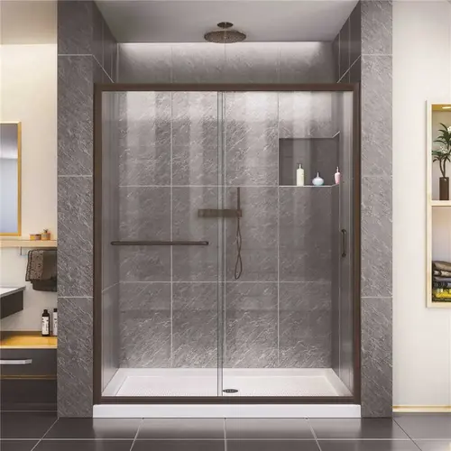 The DreamLine Infinity-Z sliding shower or tub door offers classic style with a modern touch. The Infinity-Z will transform your bathroom with a beautiful balance of functionality, elegance and sophistication. A variety of finishes and glass options will match any bathroom decor. Choose the DreamLine Infinity-Z model for the ultimate solution to your shower project.